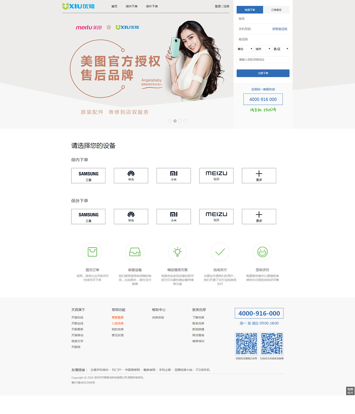 優(yōu)修是天音控股旗下子公司「天聯(lián)新動」重點打造的O2O品牌。提供免費上門、原廠品質(zhì)配件、維修錄像、90天超長質(zhì)保!