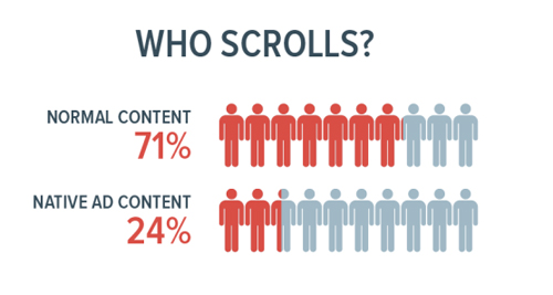 上圖注明:第一行為71%的網(wǎng)民在看普通內(nèi)容,第二行為24%的網(wǎng)民在看“原生廣告”。)