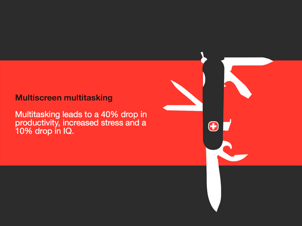 同時(shí)處理幾個(gè)任務(wù)導(dǎo)致效率下降40%,還會(huì)導(dǎo)致壓力增大和智商下降。