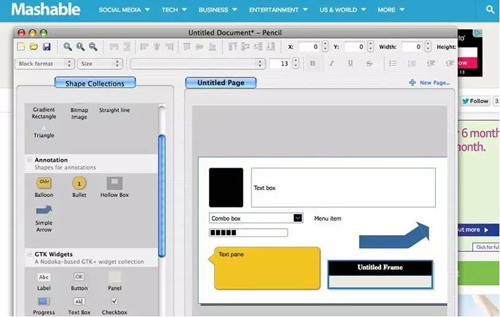 Pencil是一款開源的可以用來制作圖表和GUI原型的工具,可以作為一個獨立的app,也可以作為Firefox插件。內置模版可以幫你繪制桌面和移動界面中用到的各種各樣的用戶界面,包括流程圖、UI和一般的通用圖形。