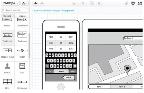 它還提供了iPhone和iPad模板,以及iOS相關的按鈕、提示框、picker、菜單、開關以及鍵盤等。你可以設置網(wǎng)格的尺寸,并預覽和分享你的線框圖。Moqups提供了一個很有用的功能就是對齊網(wǎng)格,可以使對象精準對齊。