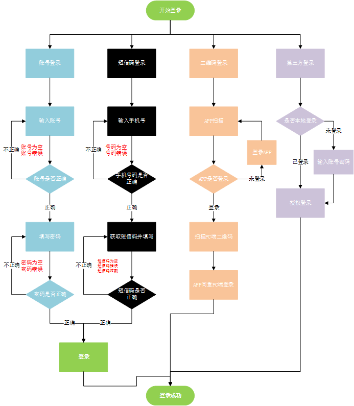 每一種登陸方式后臺(tái)都需要給出不同的驗(yàn)證判斷流程,那么涉及到的算法自然也是有所差異的。如下圖: