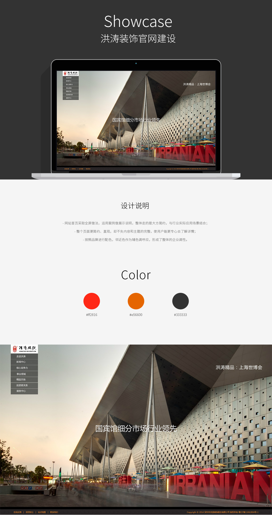 洪濤公司成立于1985年1月,2009年12月A股上市,股票代碼002325,注冊(cè)資金12.5億元人民幣,法人代表劉年新。 洪濤公司是建設(shè)部核定的全國(guó)首批設(shè)計(jì)、裝飾雙甲企業(yè),擁有建筑裝飾裝修、裝飾設(shè)計(jì)、建筑幕墻、城市及道路照明、建筑智能化、機(jī)電設(shè)備安裝、消防設(shè)施等8項(xiàng)專(zhuān)業(yè)承包一級(jí)/甲級(jí)資質(zhì);業(yè)務(wù)涵蓋裝飾設(shè)計(jì)、施工、飾材研發(fā)生產(chǎn)三大領(lǐng)域;49個(gè)分支機(jī)構(gòu)遍布全國(guó)各地。