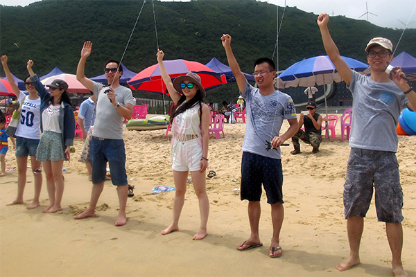 我們在這停留只有不到一小時(shí)的時(shí)間,踏踏海浪、拍拍照,還有每個(gè)人都把風(fēng)箏放到了最高。十里銀灘,留下了網(wǎng)聯(lián)人的足跡和身影,一回頭我們在路上,通往下一站。午飯后迎來了我們今日之旅的高潮,海陵島海灘,那里將是我們一下午活動的場地??∧徐n女們又一次換上裝備齊上陣,看到大海無比的興奮,迫不及待想要下海玩耍,還有一點(diǎn)點(diǎn)小可惜的是我們的媛同學(xué)和楊同學(xué)只坐在海邊的帳篷里靜靜賞景,無法去感受海浪的澎湃。大部隊(duì)的一群人都下海了,一起去沖浪,好嗨森,前前后后被海浪拍打著。在沖浪的過程當(dāng)中,我們的小桃同學(xué)因?yàn)樘菪《啻螐挠斡救?nèi)翻船。太陽緩緩變成夕陽,來來回回在一陣陣的呼喊尖叫聲中一下午的陽光海灘感受也要結(jié)束了,玩累了卻還沒有玩夠...