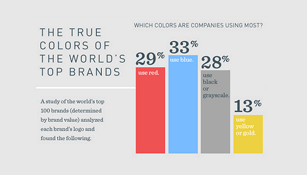 有時候,這個問題真的只是個人喜好問題。不管怎樣,這個問題在Column Five Media的信息圖表中不值一提,因為百強品牌中,只有5%選擇在配色方案中使用兩種以上的顏色