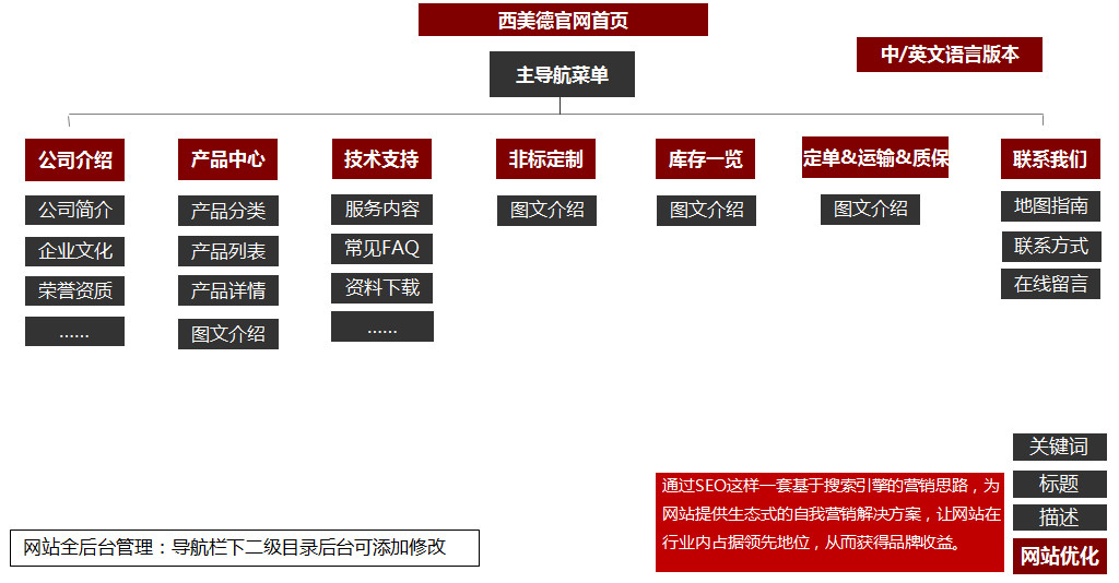福田網(wǎng)站建設(shè)公司網(wǎng)聯(lián)科技很榮幸為西美德貿(mào)易(深圳)有限公司提供企業(yè)官網(wǎng)網(wǎng)站建設(shè)開(kāi)發(fā)服務(wù),該網(wǎng)站類型為展示型的pc端網(wǎng)站開(kāi)發(fā),共中英文兩個(gè)版本企業(yè)官網(wǎng)。