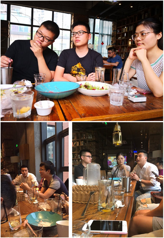 因?yàn)橛行聛?lái)的同事,所以大家先進(jìn)行了自我介紹,之后大家便如多年好友一般交談,在咖啡廳里享受融洽的氛圍,拉近了彼此的距離。